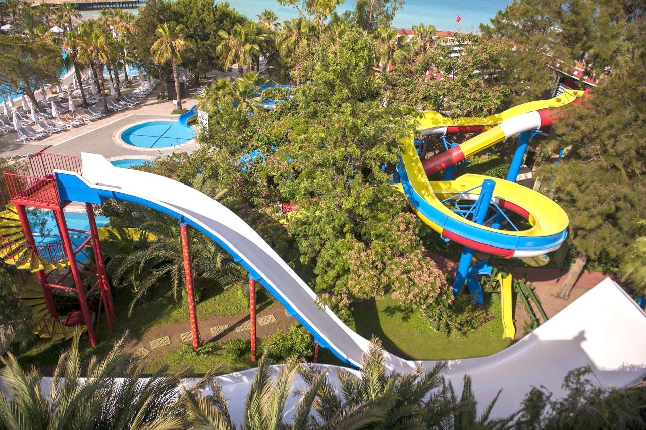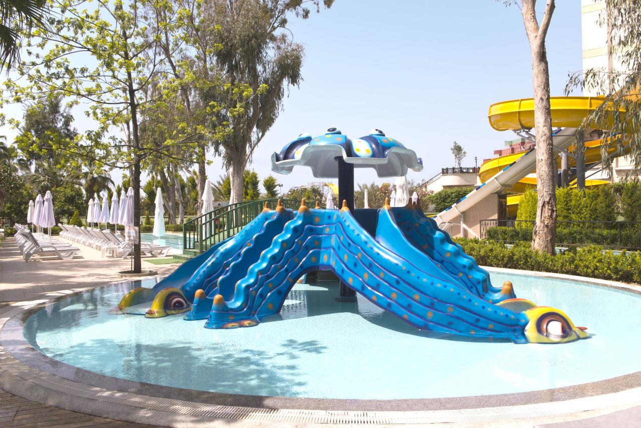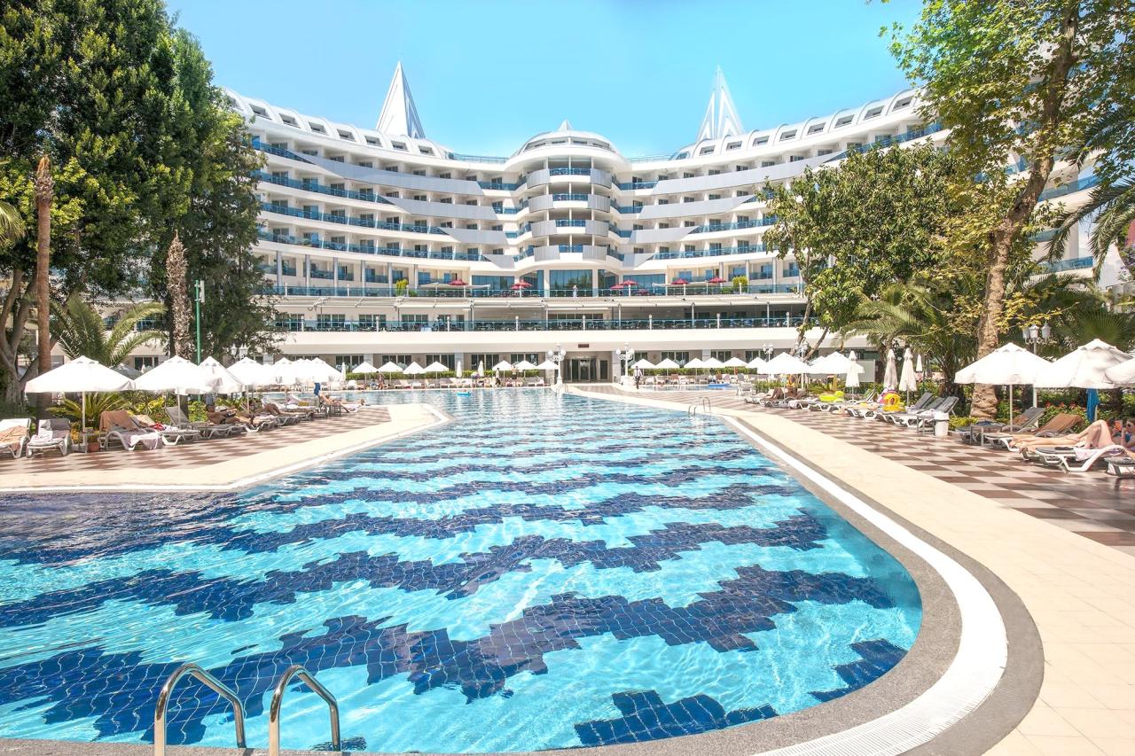 vstupná hala s recepciou, WiFi v lobby, 6 výťahov - z toho 4 panoramatické, hlavná reštaurácia, 5 a´la carte reštaurácií, 5 barov, 3 vonkajšie bazény, 1 vnútorný bazén, 3 detské bazény, aquapark s tobogánmi, lunapark, detské ihrisko, miniklub, (4-12r.), denné a večerné animačné programy, amfiteáter, živá hudba a vystúpenia, diskotéka, kino, plážový volejbal, fitnes, SPA minifutbal, basketbal, tenisový kurt s vybavením, vodné pólo, aerobik, zumba, kyvadlová doprava do Alanye, Manavgatu a Side zdarma (nutná rezervácia vopred, hotel ponúka na pláži ležadlá a slnečník zadarmo, počet ležadiel a slnečníkov je obmedzený. Na jednu izbu klienti dostanú 2 ležadlá a slnečník podľa možností. Za poplatok: vodné motorové športy, biliard, bowling, kozmetika, práčovňa, kaderník, internetová kaviareň, herňa.