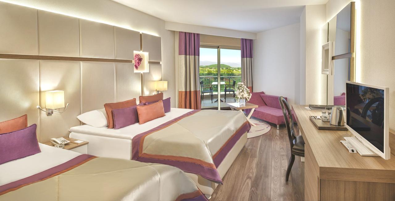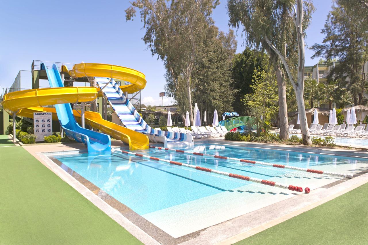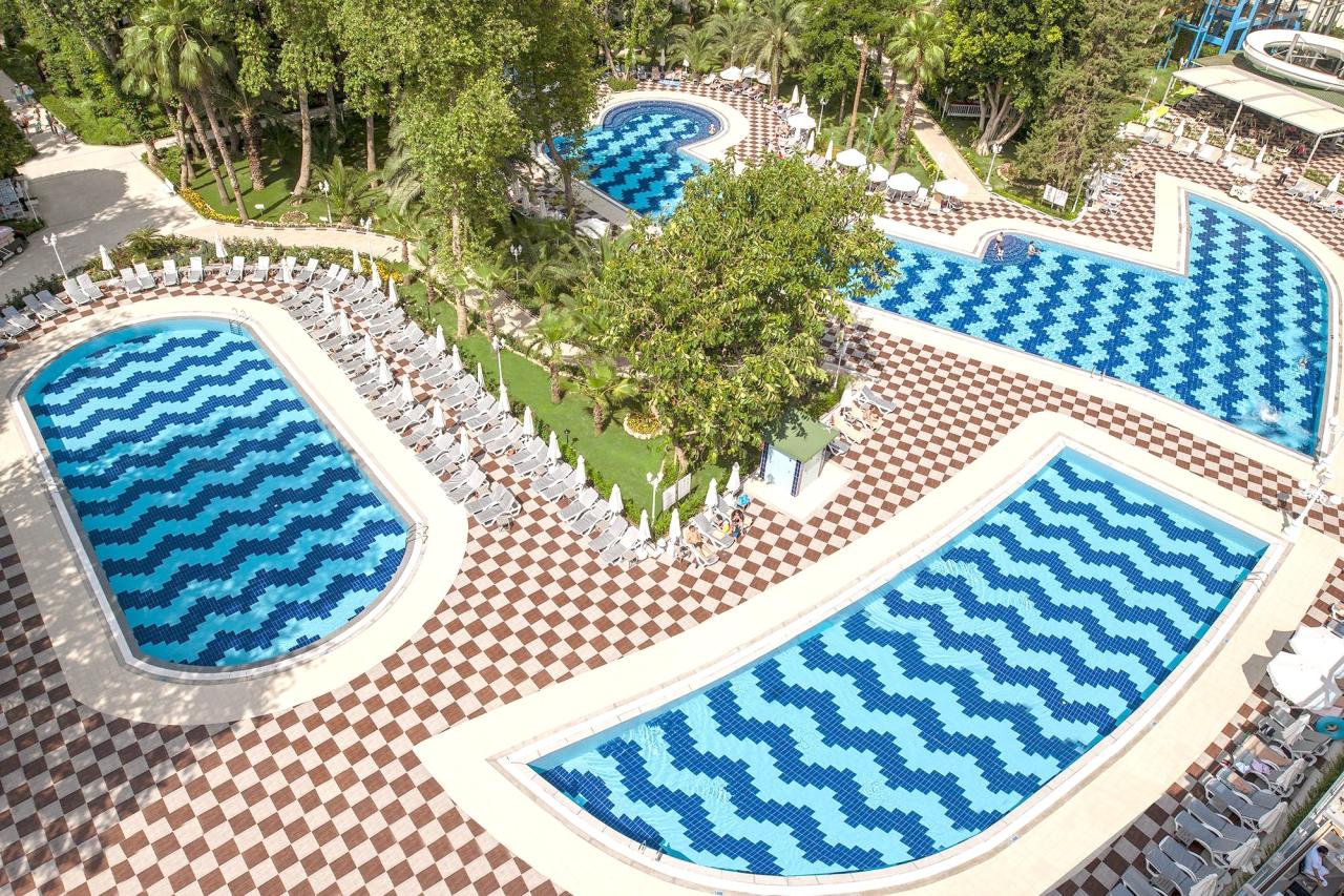 vstupná hala s recepciou, WiFi v lobby, 6 výťahov - z toho 4 panoramatické, hlavná reštaurácia, 5 a´la carte reštaurácií, 5 barov, 3 vonkajšie bazény, 1 vnútorný bazén, 3 detské bazény, aquapark s tobogánmi, lunapark, detské ihrisko, miniklub, (4-12r.), denné a večerné animačné programy, amfiteáter, živá hudba a vystúpenia, diskotéka, kino, plážový volejbal, fitnes, SPA minifutbal, basketbal, tenisový kurt s vybavením, vodné pólo, aerobik, zumba, kyvadlová doprava do Alanye, Manavgatu a Side zdarma (nutná rezervácia vopred, hotel ponúka na pláži ležadlá a slnečník zadarmo, počet ležadiel a slnečníkov je obmedzený. Na jednu izbu klienti dostanú 2 ležadlá a slnečník podľa možností. Za poplatok: vodné motorové športy, biliard, bowling, kozmetika, práčovňa, kaderník, internetová kaviareň, herňa.