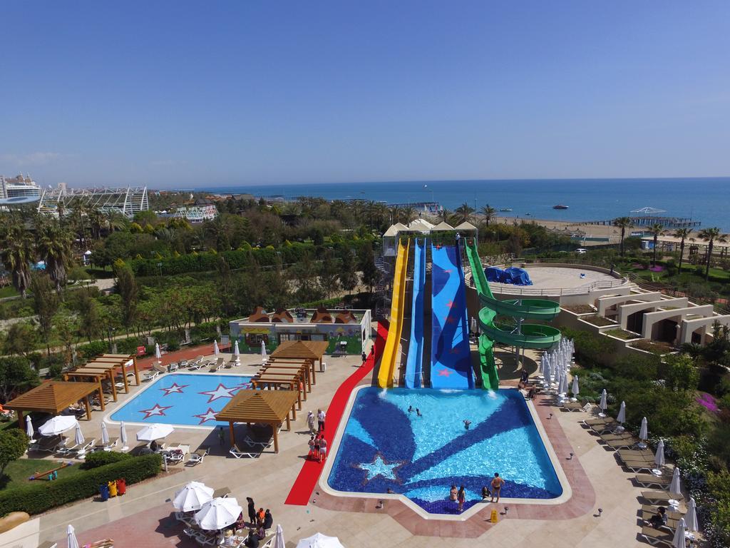 vstupná hala s recepciou, hlavná reštaurácia, 5 a la carte reštaurácií, bary, WiFi pripojenie na internet v lobby zdarma, disco, vnútorný bazén, posilňovňa, parná sauna a turecké kúpele, stolný tenis, plážový volejbal, 2 vonkajšie bazény aj so šmýkačkami, detský bazén, detské ihrisko, miniklub, minidisko, tenisový kurt, animácie. Za poplatok: masáže, wellness centrum, internetový kútik, biliard, bowling, vodné športy na pláži, čistiareň, práčovňa, zmenáreň, služby lekára, obchodná pasáž, kaderníctvo, salón krásy.
