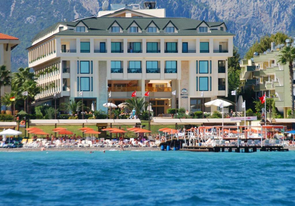Golden Lotus Hotel sa môže pochváliť výbornou polohou priamo v centre známeho letoviska Kemer. V bezprostrednej blízkosti nájdete množstvo obchodov, barov či nočných klubov, čo robí tento hotel ideálnou voľbou pre tých, ktorí chcú spojiť oddych pri mori s aktívnym mestským životom. Hotel sa nachádza priamo pri kamienkovej pláži s mólom, kde si hostia môžu vychutnať atmosféru Stredozemného mora.