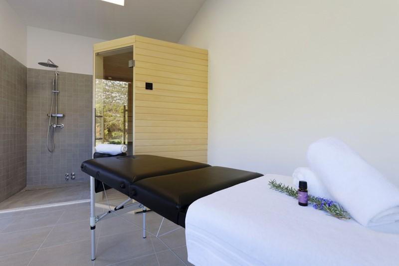 Interiér vily kombinuje moderní linie s teplými barvami, které poskytují skutečně relaxační atmosféru. Milovníci umění ocení pozoruhodnou sbírku obrazů, které zdobí stěny vily. Elegance v rovnováze s harmonií se táhne celou vilou. Minimalisticky zařízené přízemí se skládá z otevřené kuchyně, jídelny a posezení. Kuchyně a jídelní kout jsou plně vybaveny a zařízeny všemi potřebnými spotřebiči. Ve stejném patře je ložnice s vlastní koupelnou a východem na terasu. Pro naprosto pohodlný pobyt je zde také prádelna, WC, sklad, sauna a fitness.