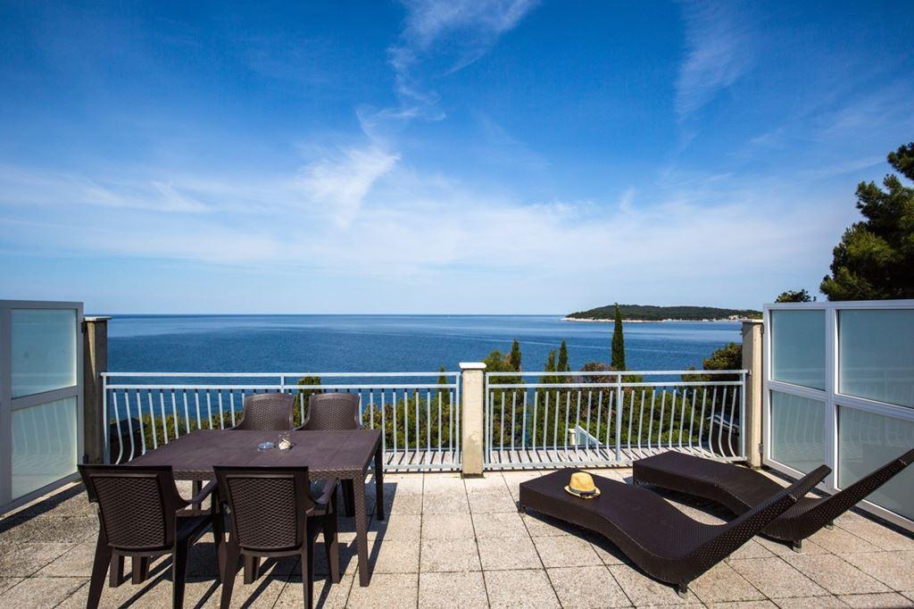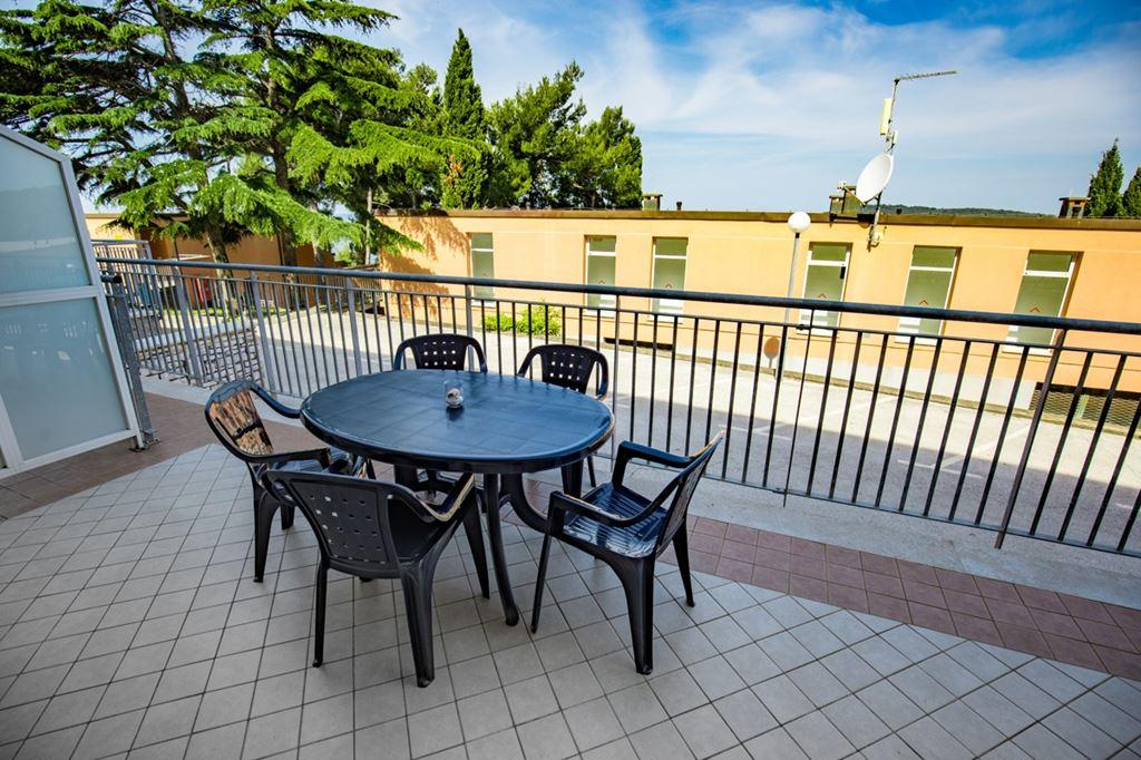 TYP AX 3-5 - Dvoupokojový apartmán, cca 40 m2 + 40 m2 terasa, až pro 5 osob, sestával z obývacího pokoje s rozkládacím dvoulůžkem, jednoho dvoulůžkového pokoje s jedním samostatným lůžkem, kuchyňského koutu, kávovaru, lednice a mrazáku, koupelny, prostorné terasy na mořské straně se 2 lehátky.